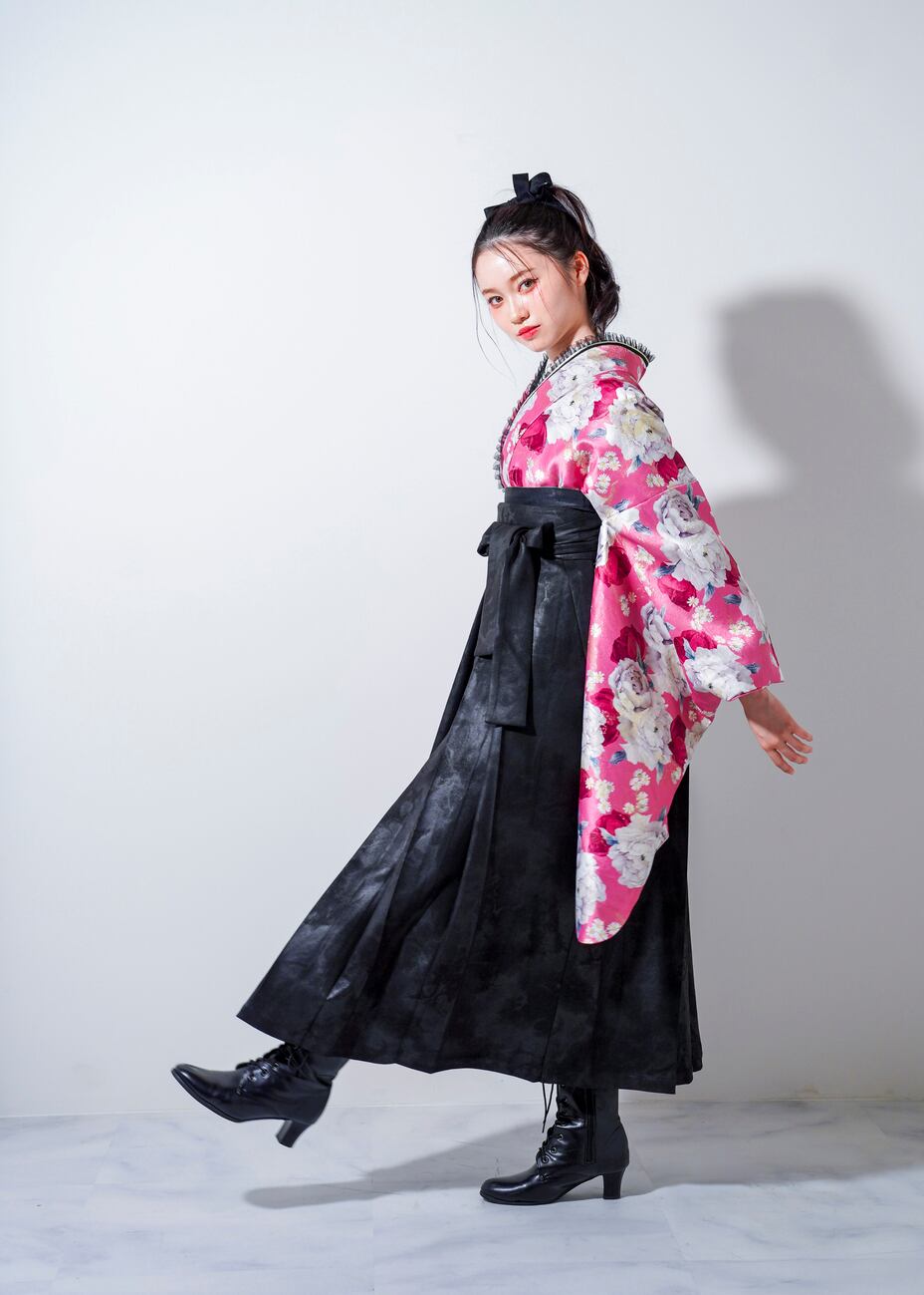 ✔ ブラック袴がシルエットを引き締め、大人っぽさをプラス