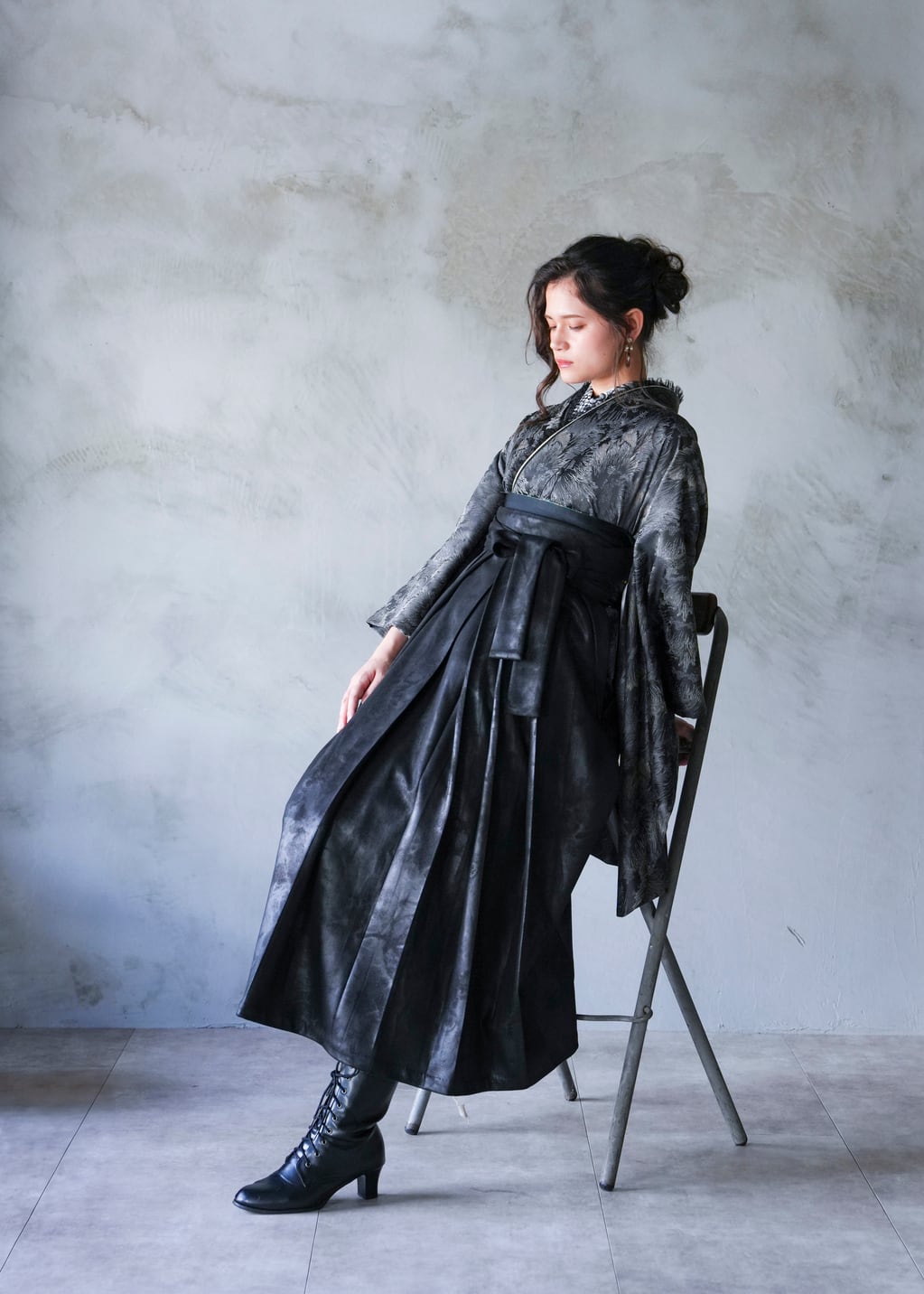 レンタル 卒業袴 ブラック孔雀×ブラックレザー袴