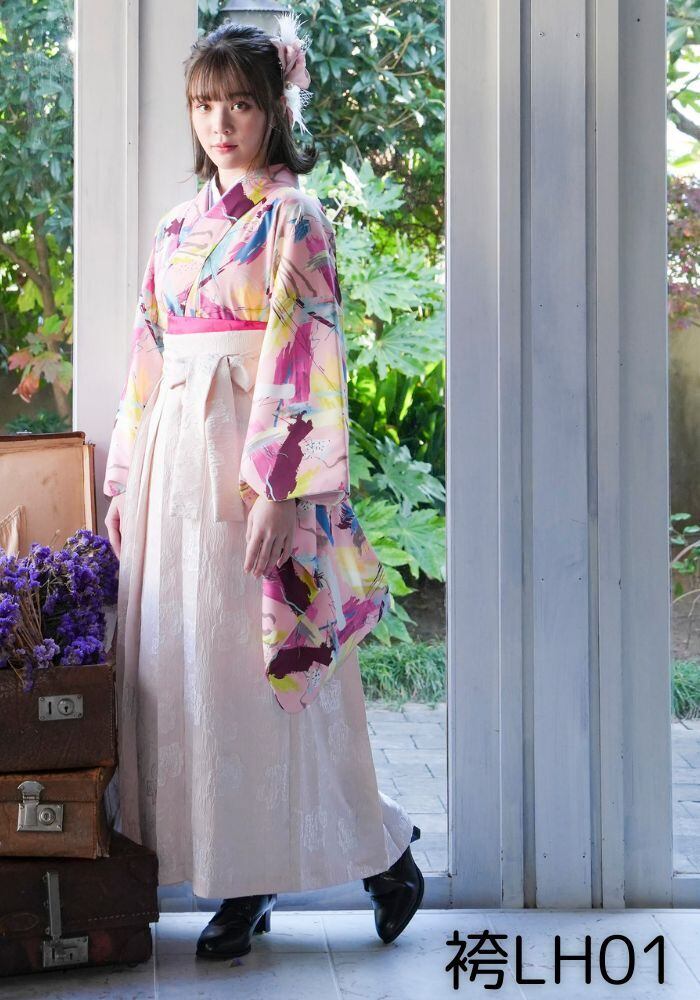 レンタル 卒業袴 サーモンピンク ペイント 【LHK09】