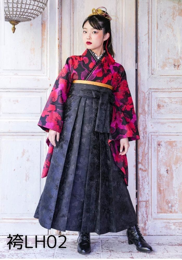レンタル 卒業袴 ブラック レッドフラワー 【LHK13】